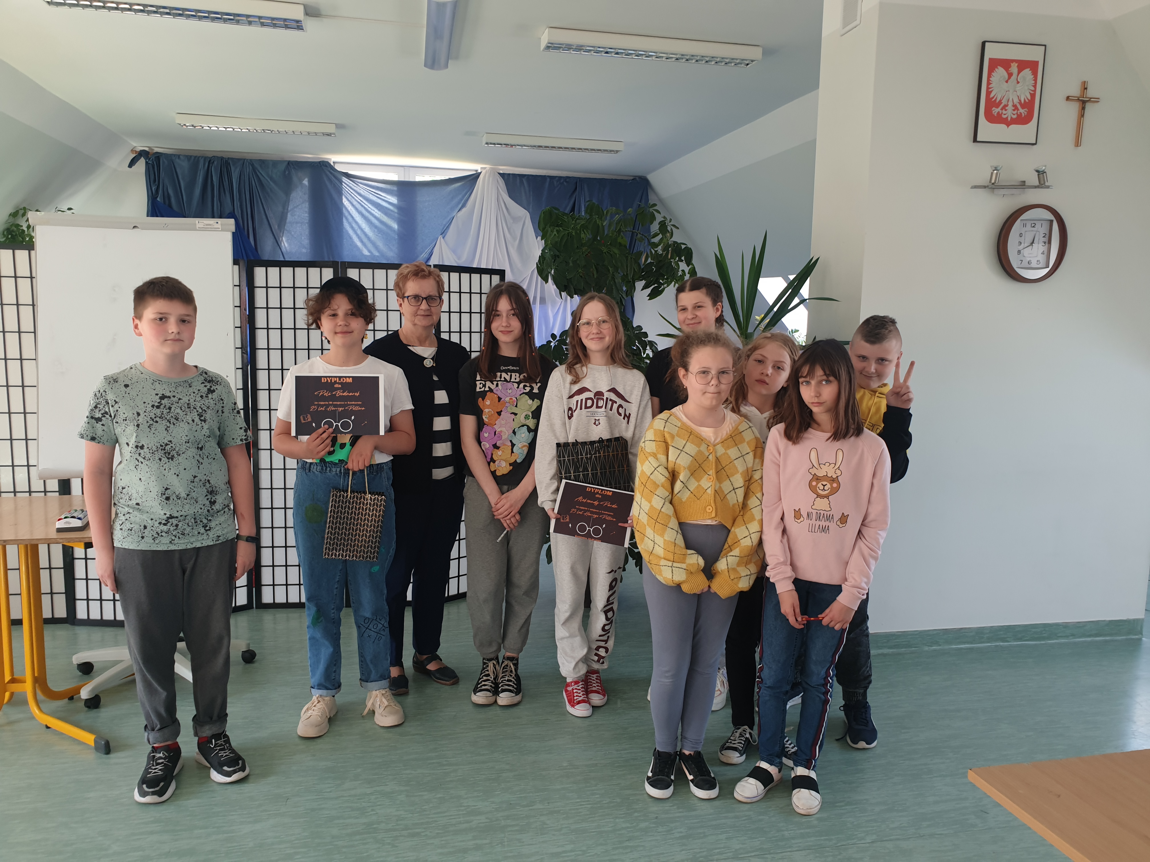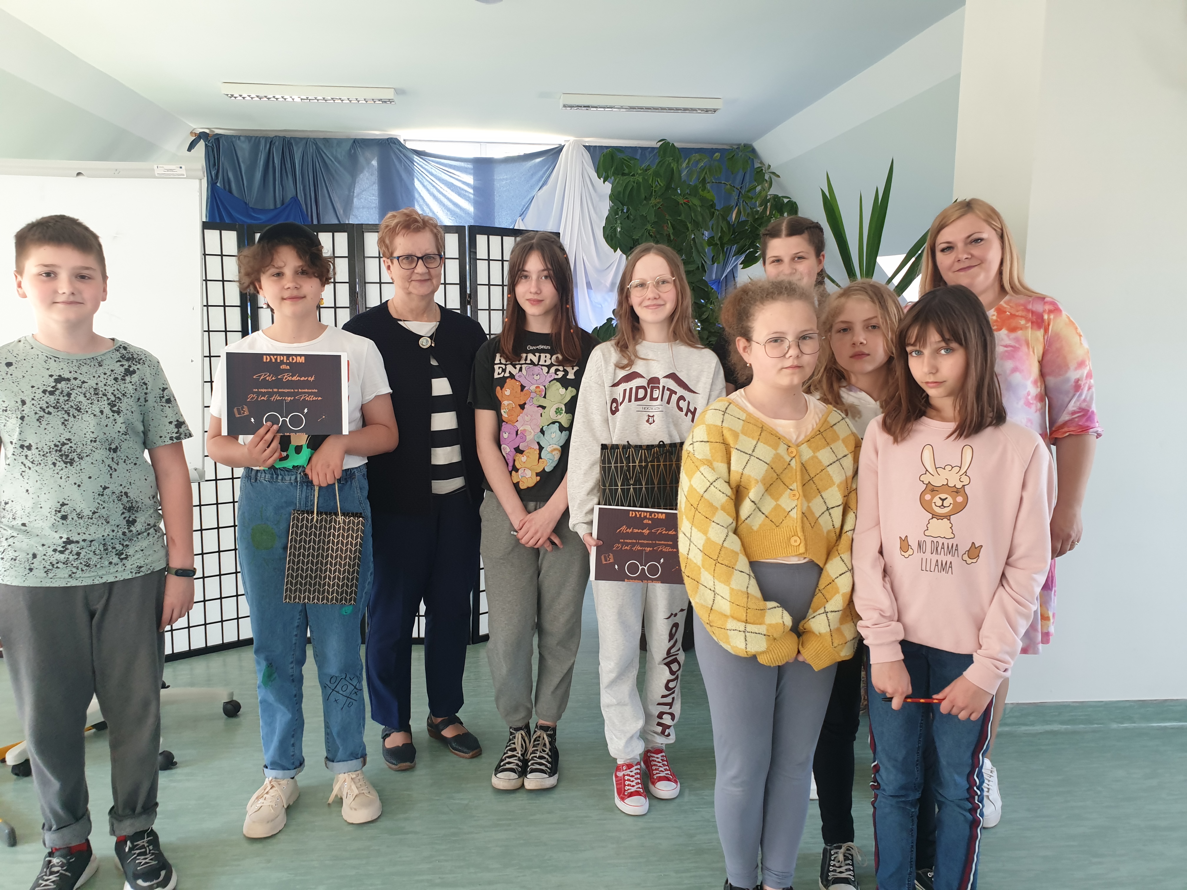 W naszej szkole również mamy spore grono „potteromaniaków”, którzy chętnie wzięli udział w konkursie wiedzy „25 lat Harrego Pottera” zorganizowanym przez bibliotekę szkolną prowadzoną prze p. Milenę Drężek. Konkurs miał formę testu i został przeprowadzony 6 maja 2022 roku. Przystąpili do niego chętni uczniowie z klas IV-VIII. Zwycięzcami konkursu zostali: